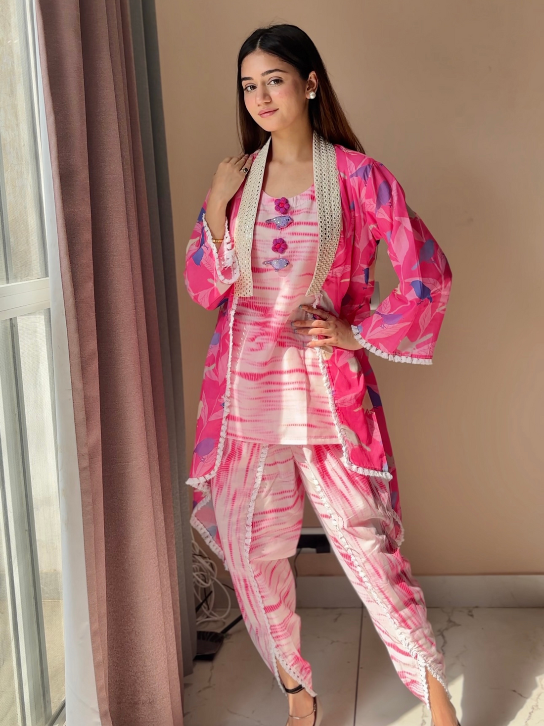Pinkie Affaire Cotton 3 Piece Kurta & Jacket Set