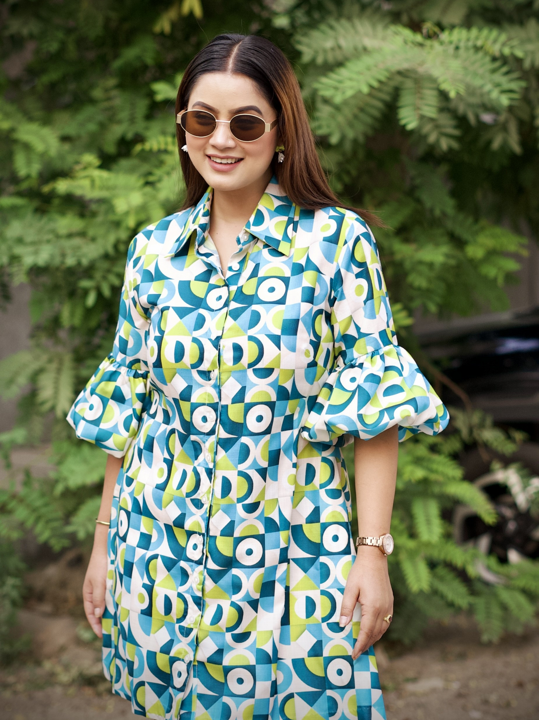 Linen Sweenie Greenie Abstract Print Shirt Dress