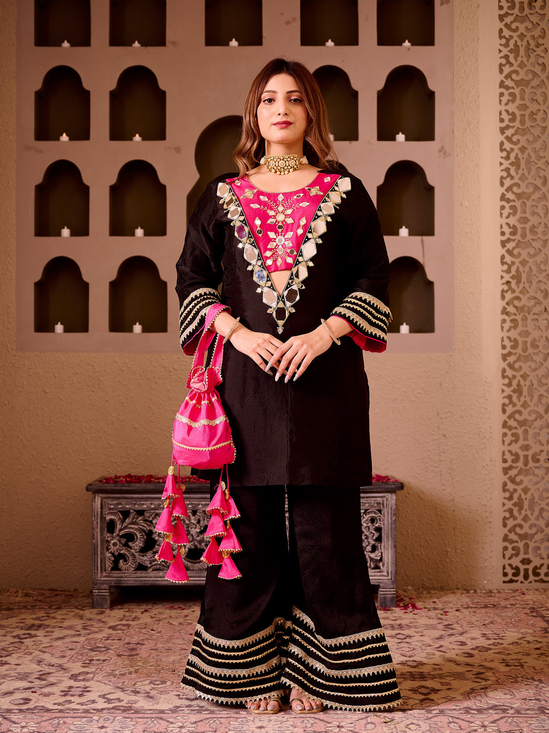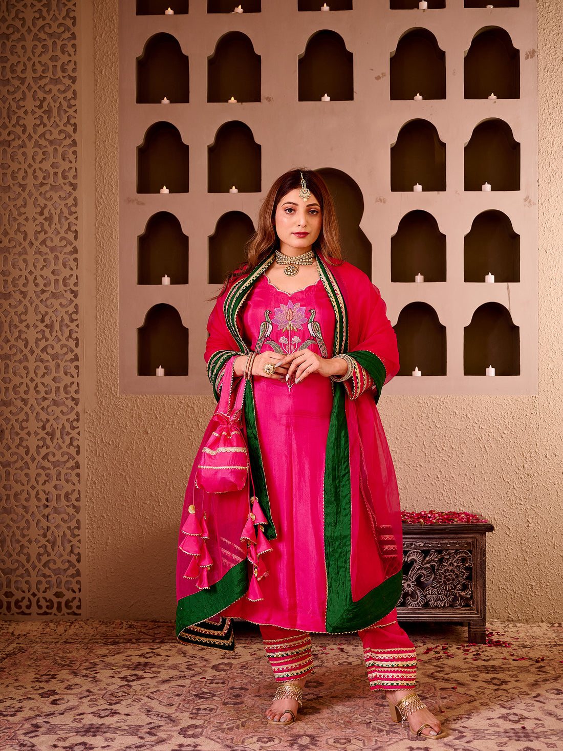 Wrenee Hot Pink Embroidered Silk Co-ord Set