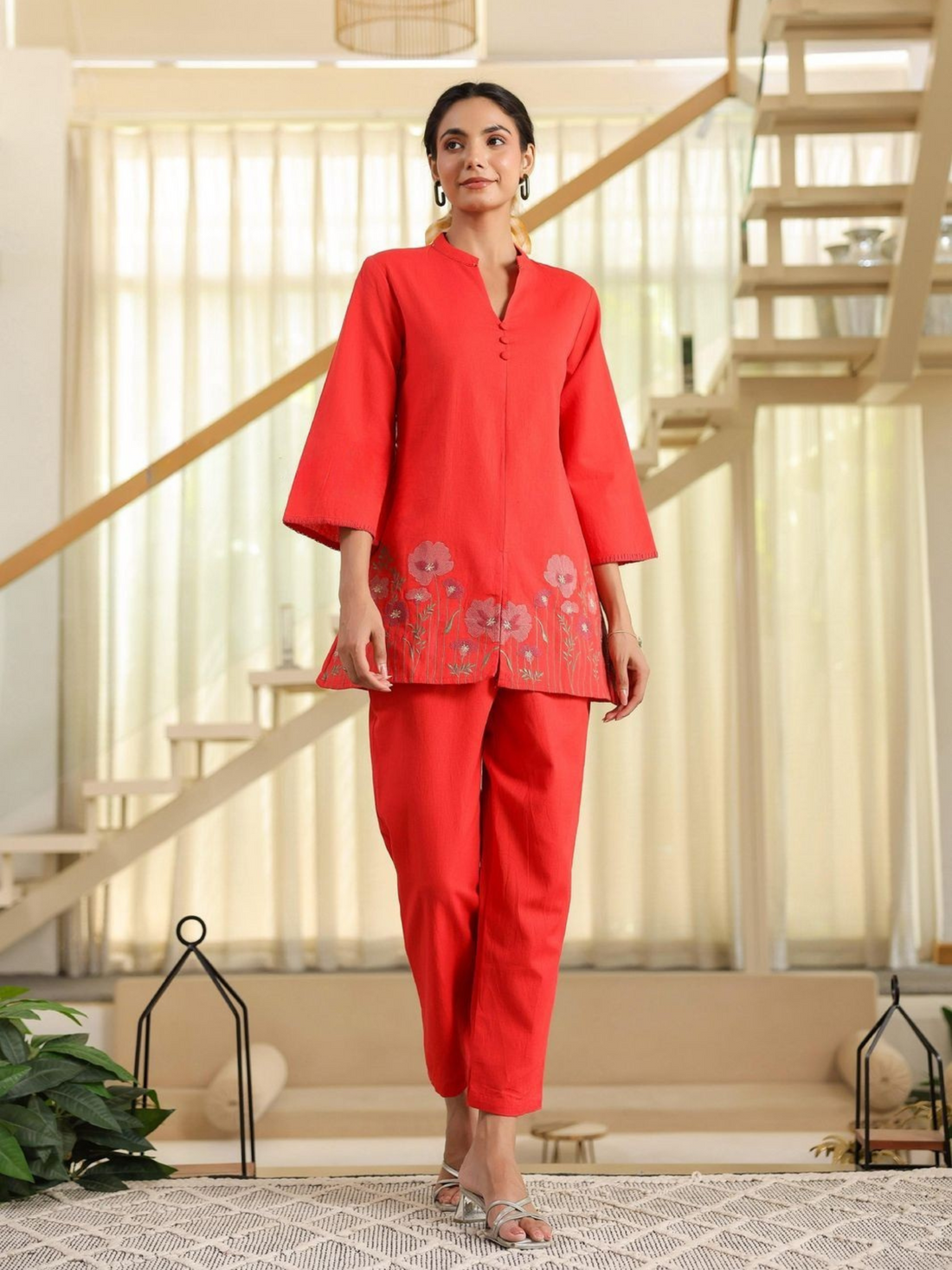 Product Code :PIT1005-Red Our Premium Pure Cotton Kurta with Embroided Neckline and Pocket in designer...