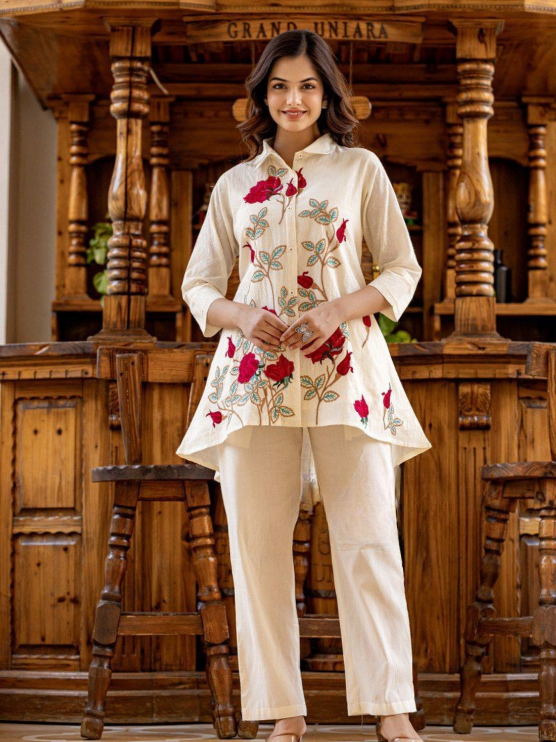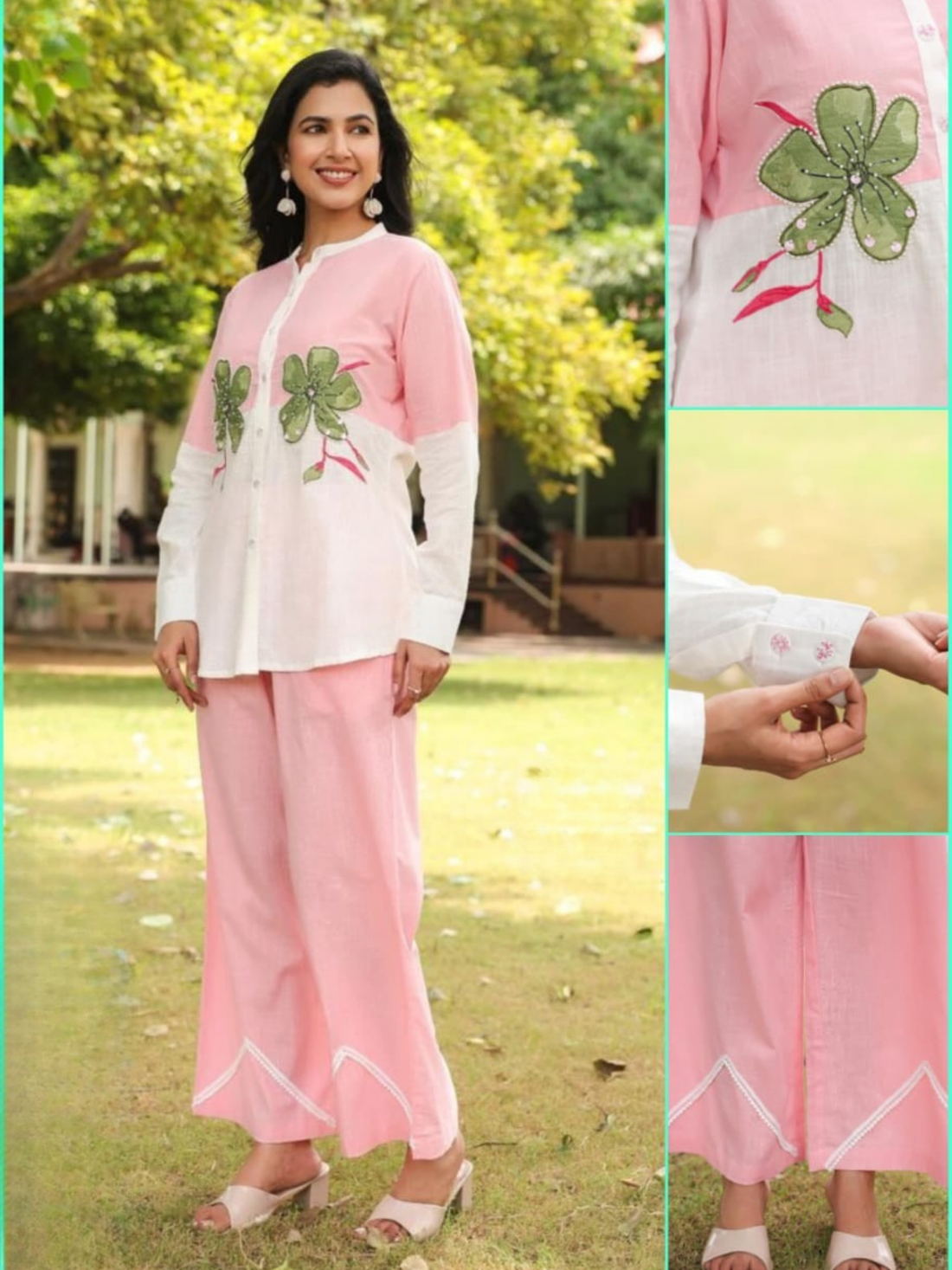 Premium Cotton Co-Ord Set With Two Tone Shirt With Handwork