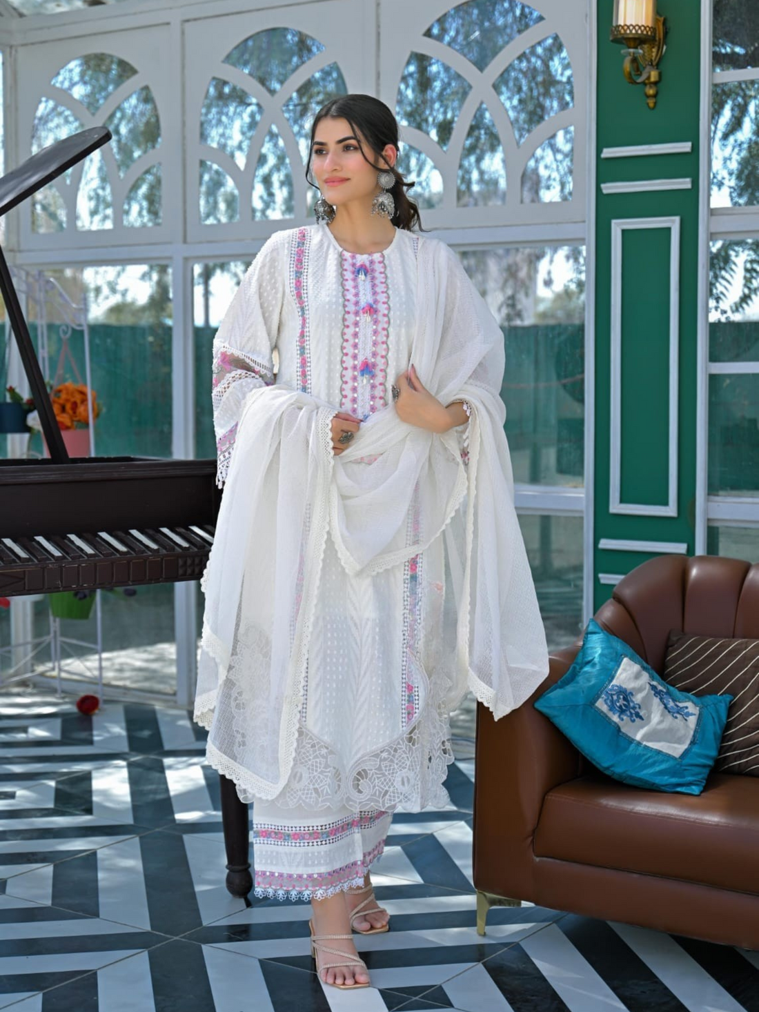 Premium Cotton Dobby Pakistani Style With Embroidery Suits in White