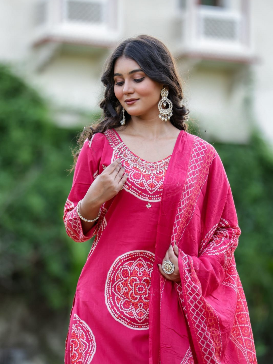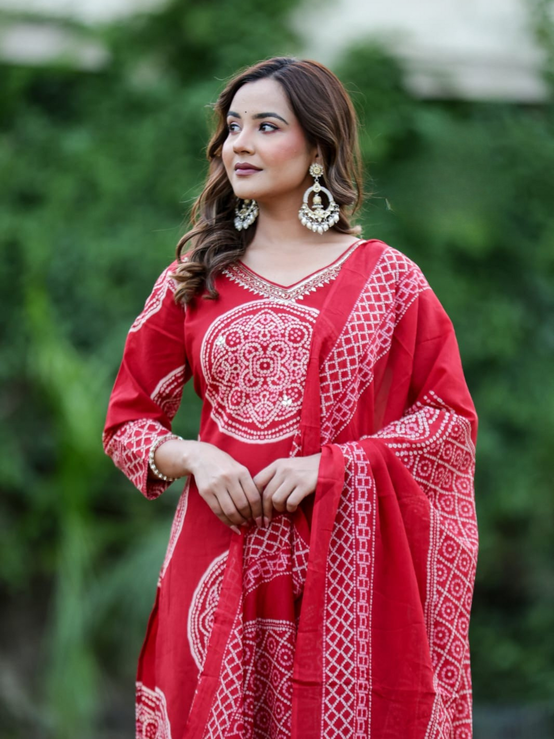 Product Code :PIT1005-Red Our Premium Pure Cotton Bandhani Kurta with Heavy Hand Gota Patti Work...