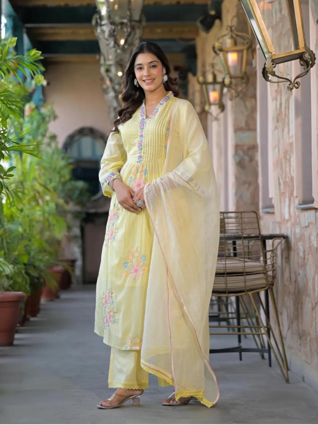 Product Code :DS1008 Our Premium Mul Cotton Embroidery Co-ord sets Is the perfect pick for...