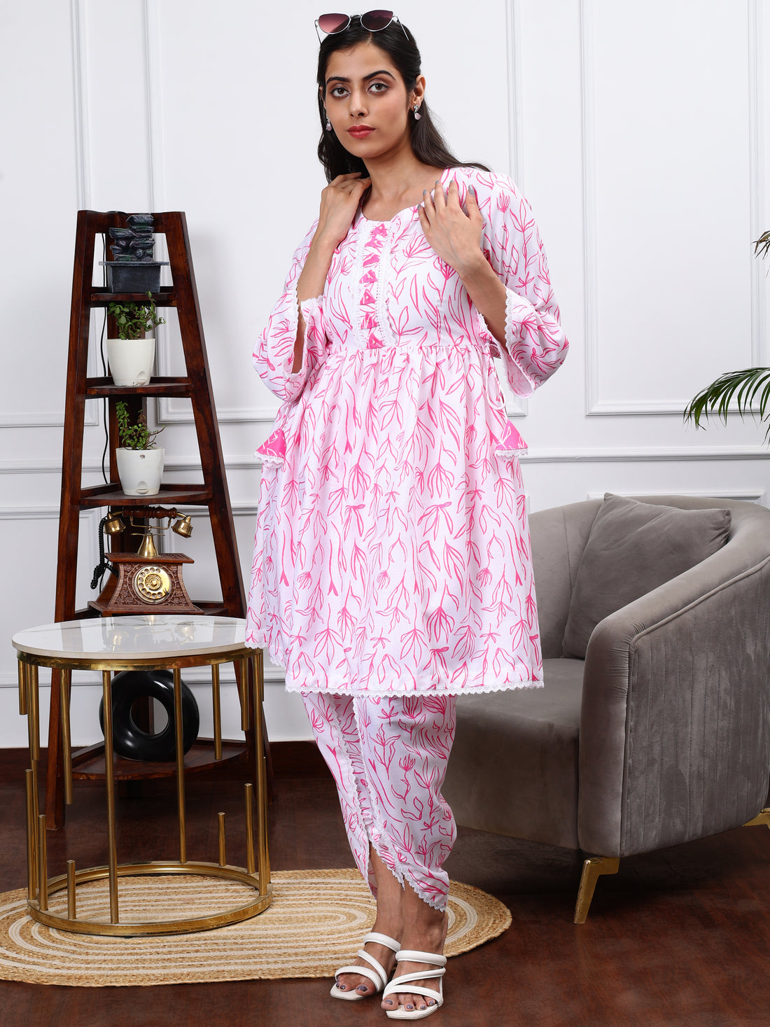 Pure Cotton Slub A-line Pink Kurta Set with Palazzo
