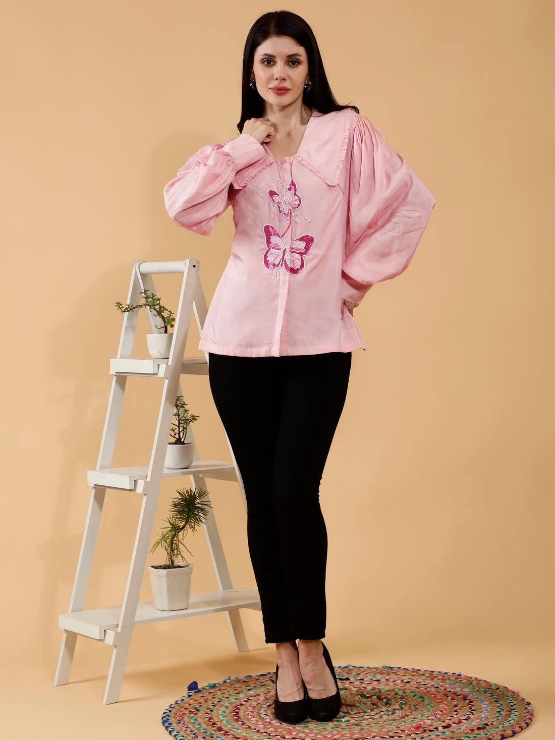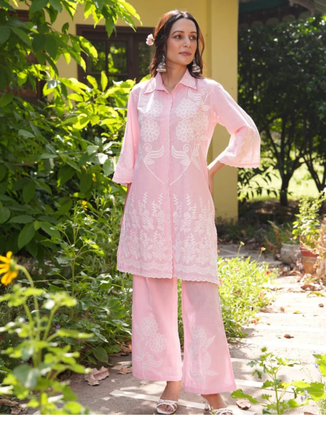 PRODUCT SKU: PNP2001 DESCRIPTION: Beautiful hand embroidered shirt in a very pretty blush pink color...