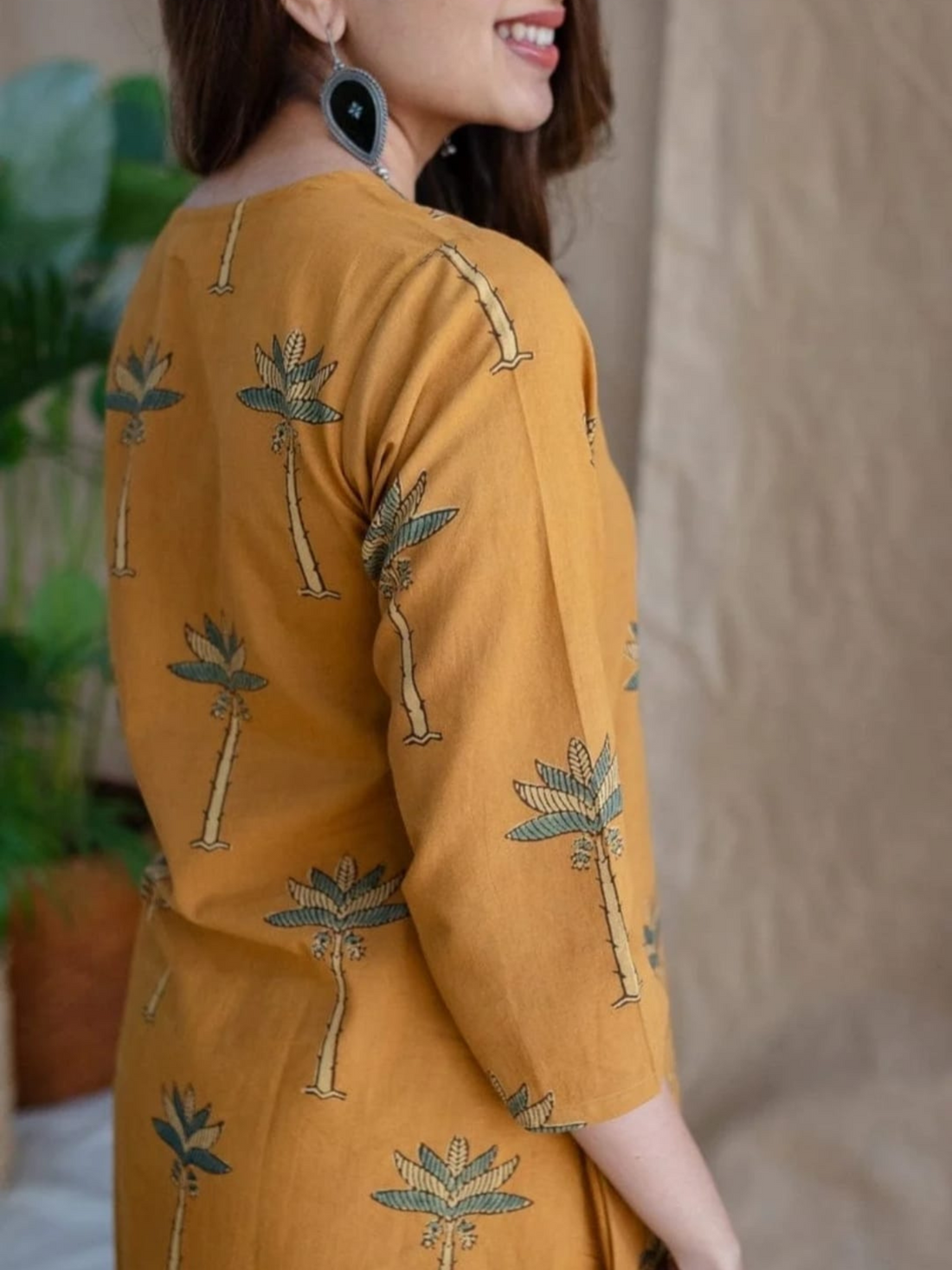 Product Code :PIT1001-Yellow Our Premium Pure Cotton Digital Printed Kurta with Embroided Yoke and Crotchet...