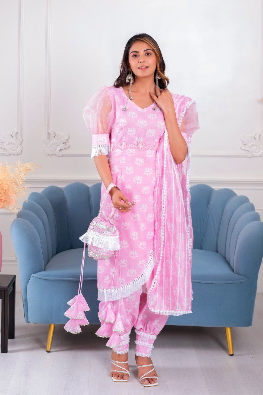 Sarah Baby Pink Lotus 3 Piece Suit Set