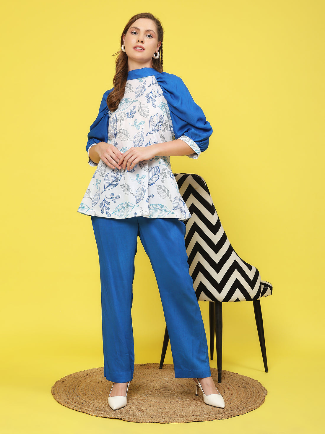 Product Code- PNPS2447 DESCRIPTION- A trendy and chic co-ord in shades of blue & yellow...