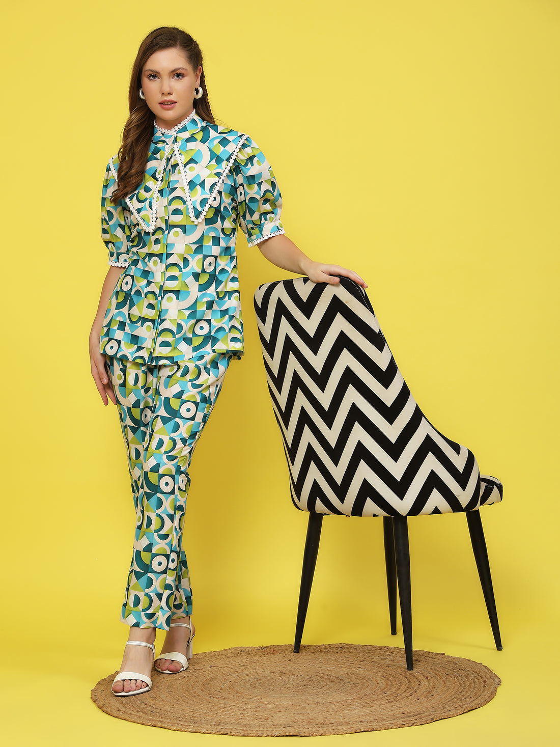 Linen Co-ord Set - Genie Greenie Abstract Print