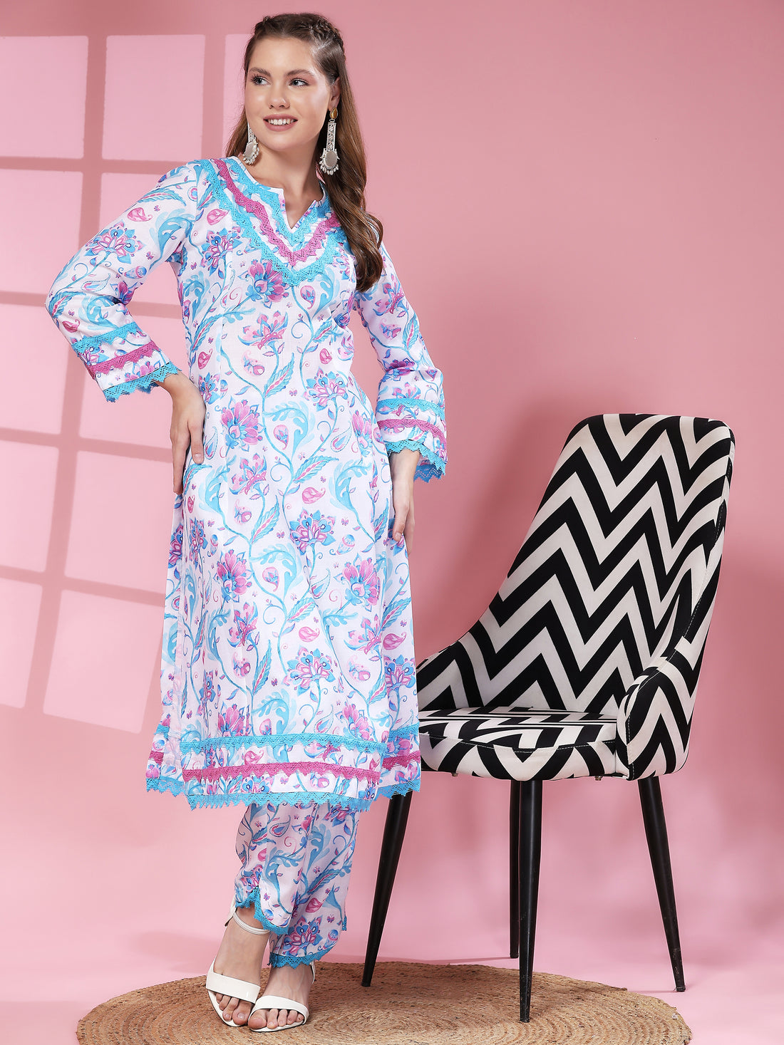 Product Code- PNPS2438 DESCRIPTION- This kurta set in white color and an alluring floral print...