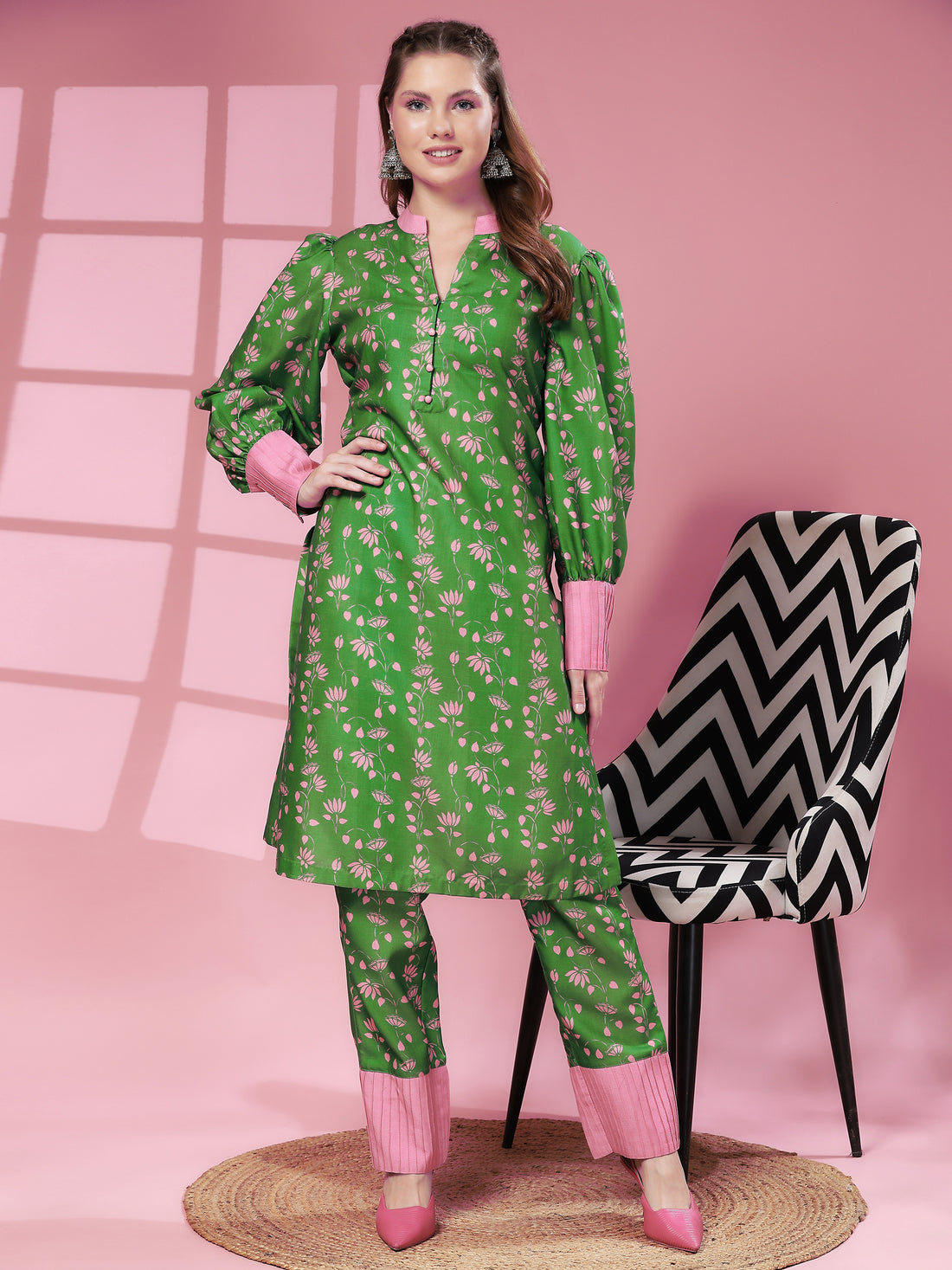 Product Code- PNPS2426 DESCRIPTION- This kurta set in Mehendi green color and an alluring floral...