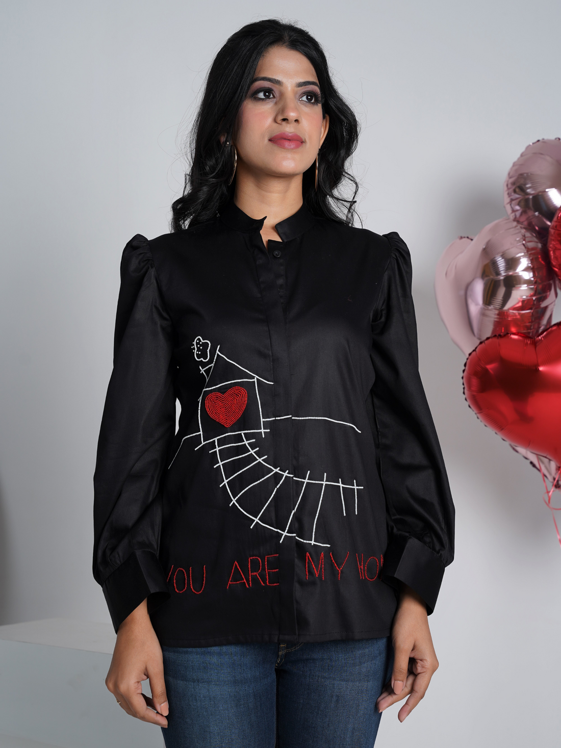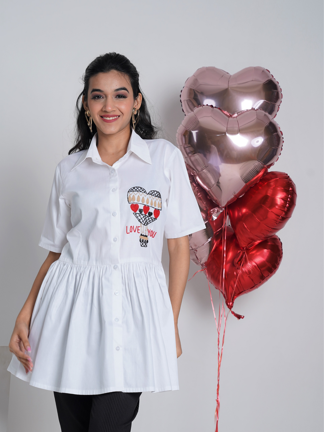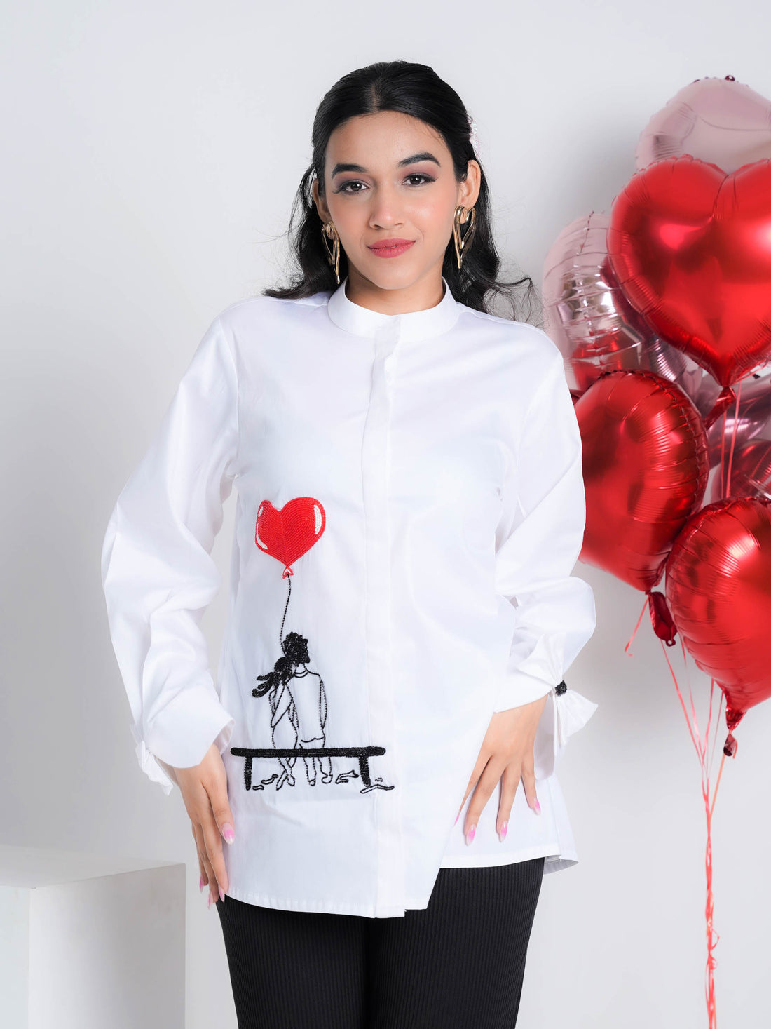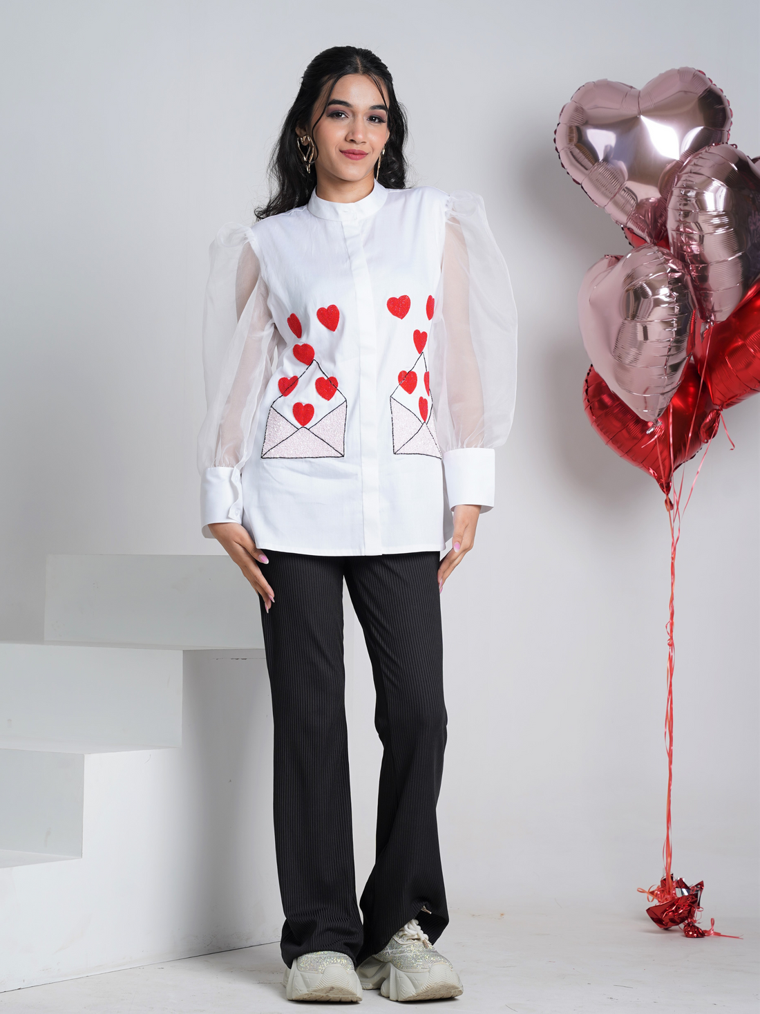 Envelope full of Hearts Embroidered Pure Cotton White Shirt