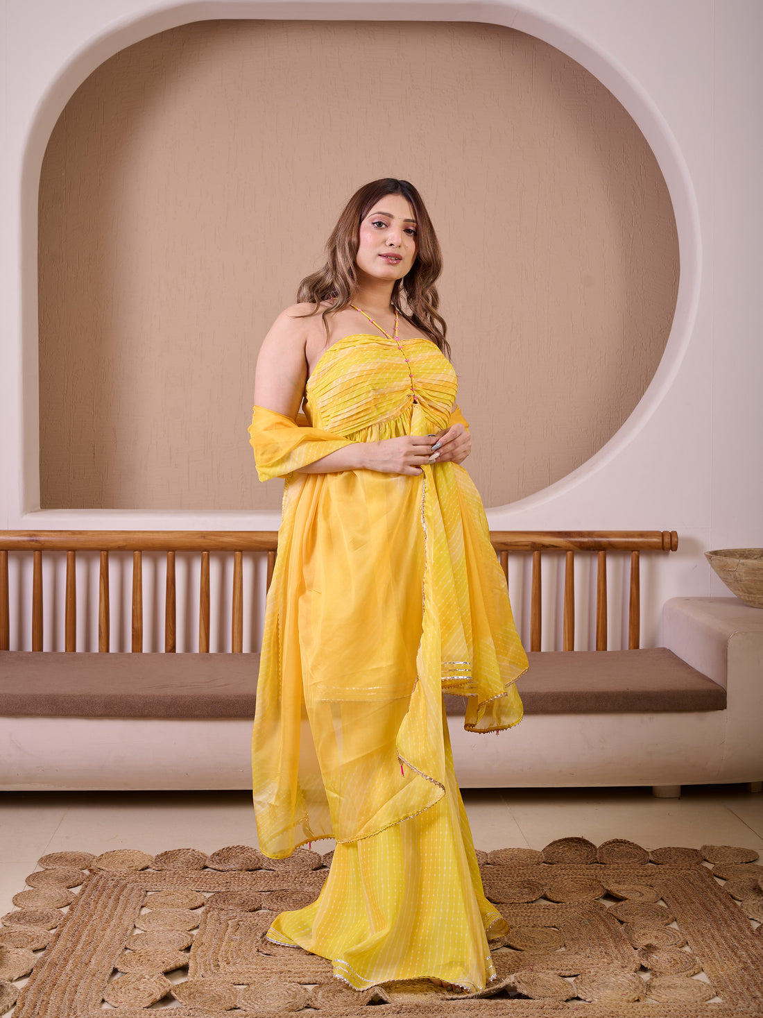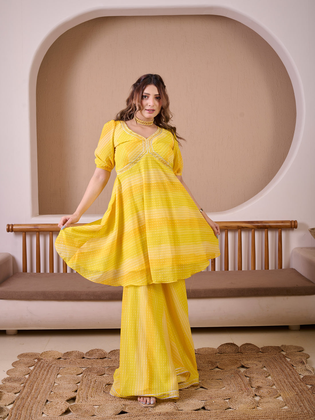 Sunheri Yellow Ombre Leheriya Suit Set With Gota Detailings