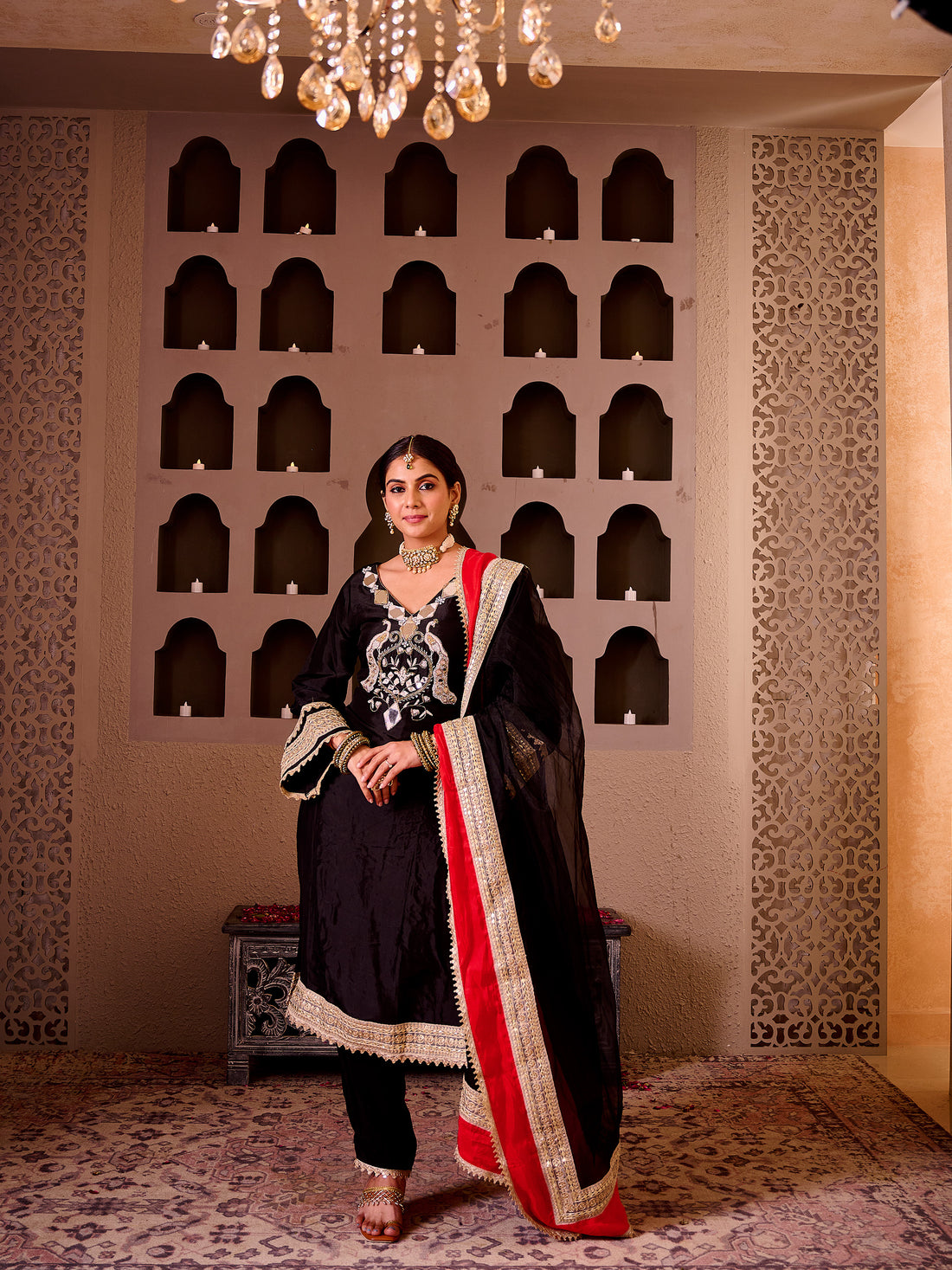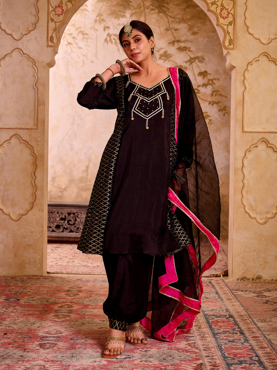 Sheeshmahal Black Silk Hand Embroidered Suit Set