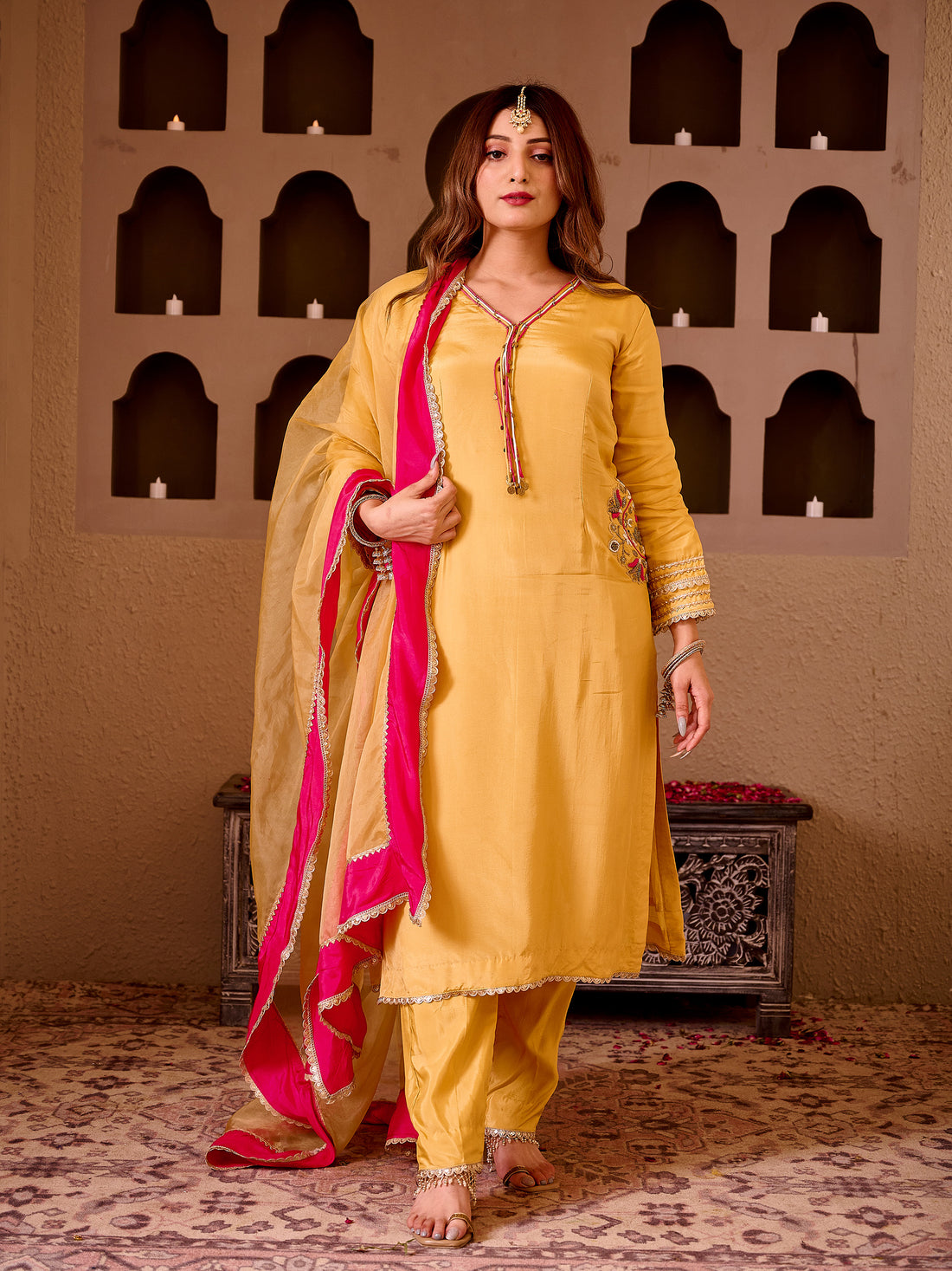 Suruchi Golden Silk Hand Embroidered Suit Set
