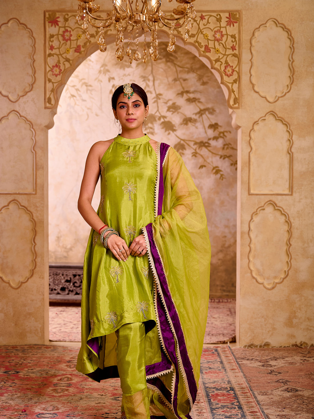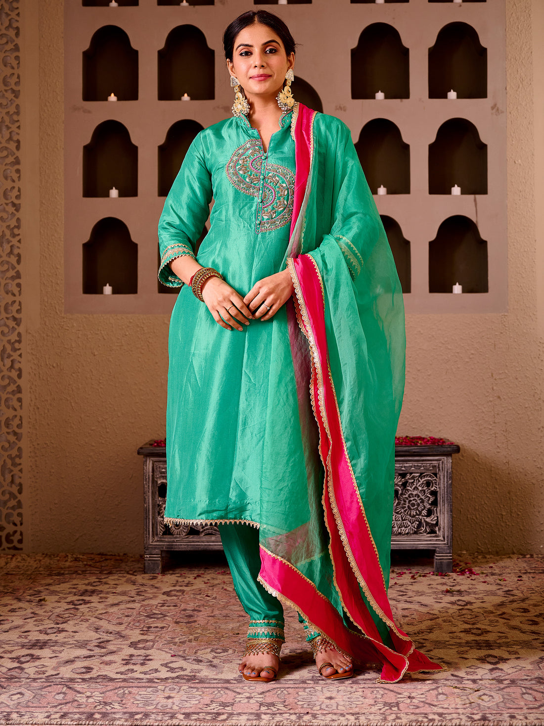 Krishika Emerald Green Silk Hand Embroidered Suit Set