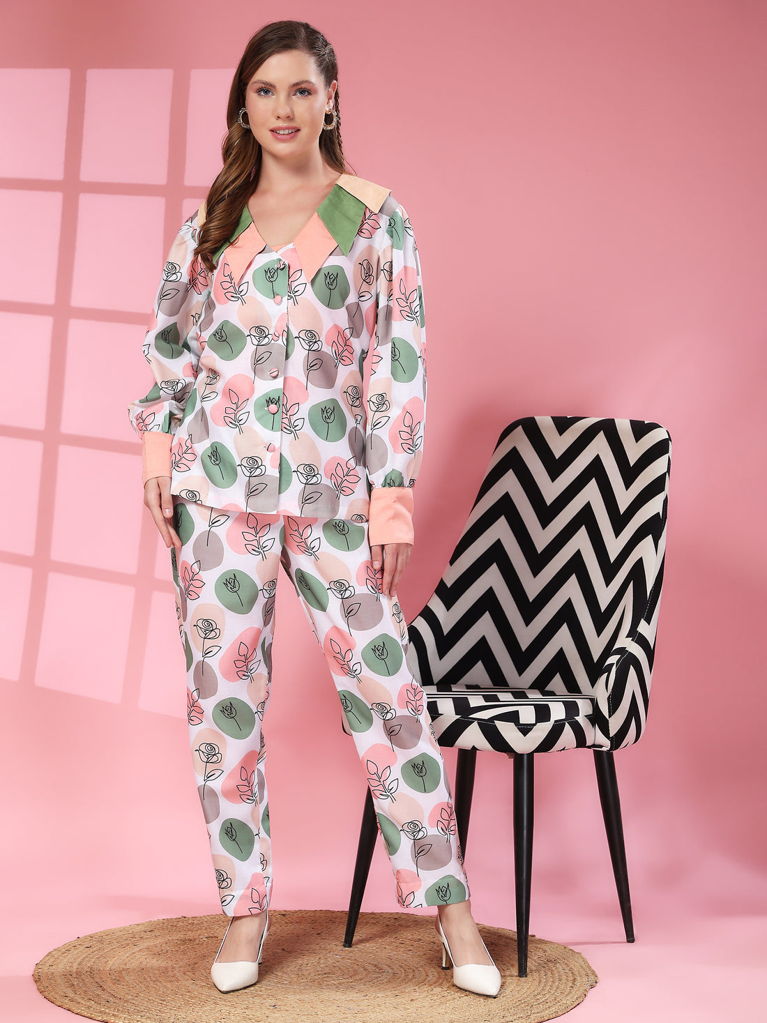 Product Code- PNPS2431 DESCRIPTION- This co-ord in white Color and an alluring abstract print in...