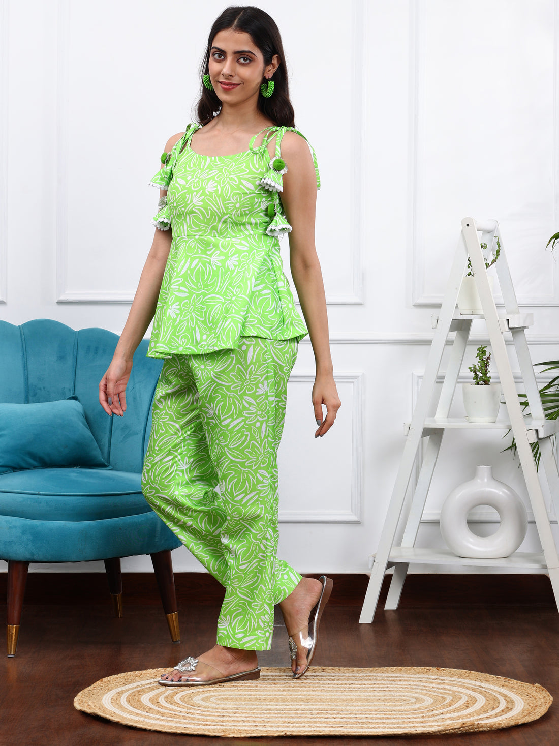 Product SKU - PNPS2419GREEN FLORAL 2 PIECE KURTA SET STYLE- FIT & FLARE KURTA WITH...