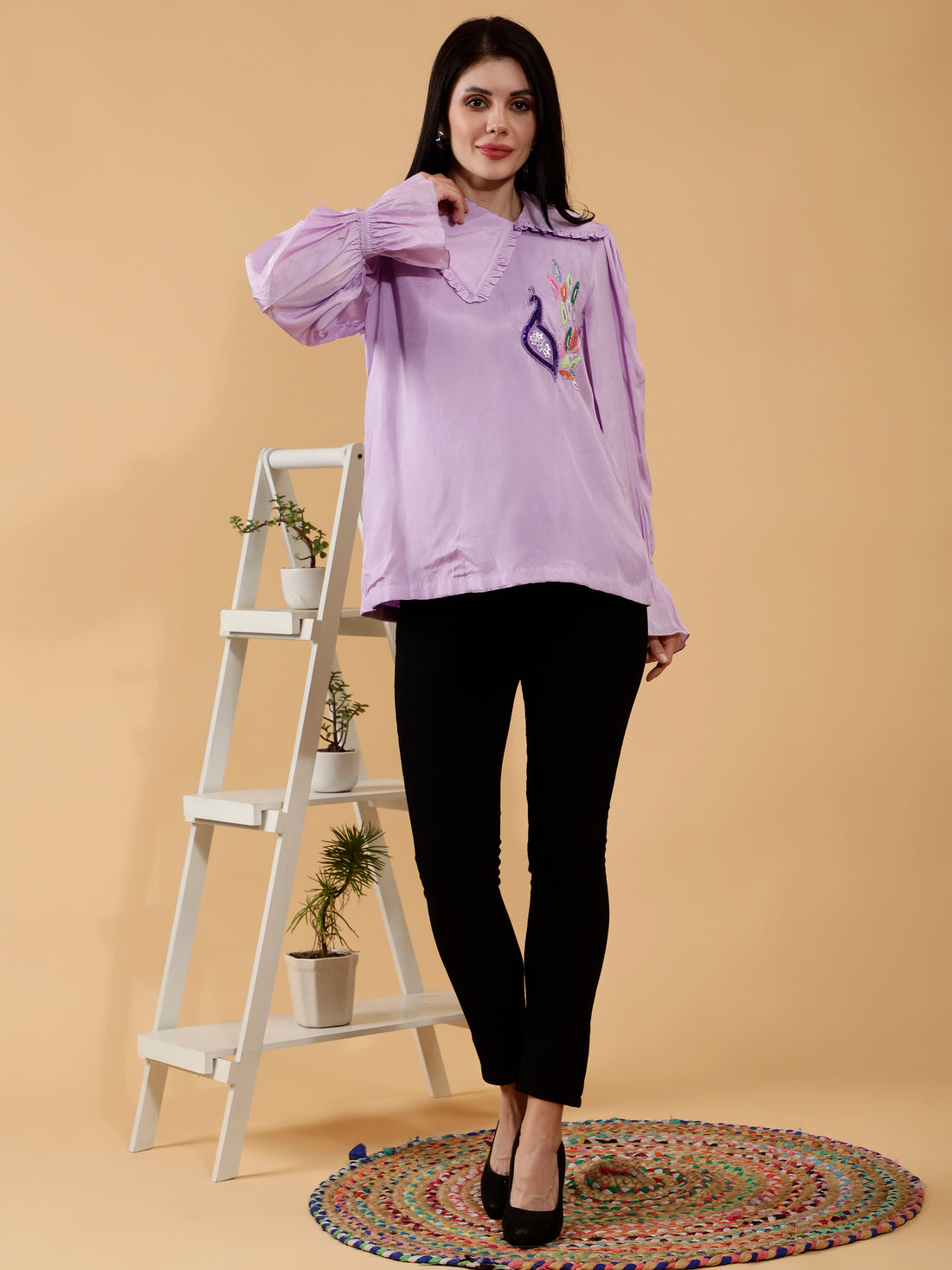 PRODUCT SKU: PNP2005 DESCRIPTION: Beautiful hand embroidered shirt in a very pretty lavender color with...
