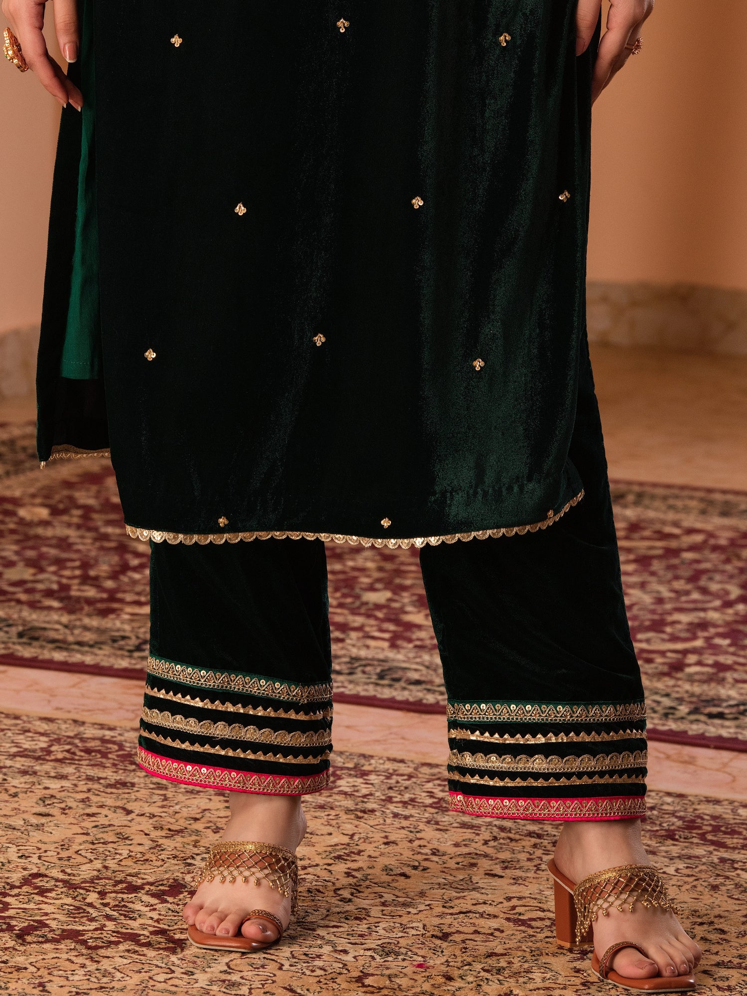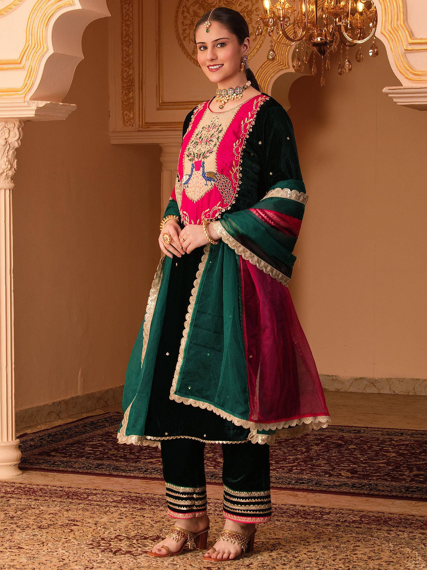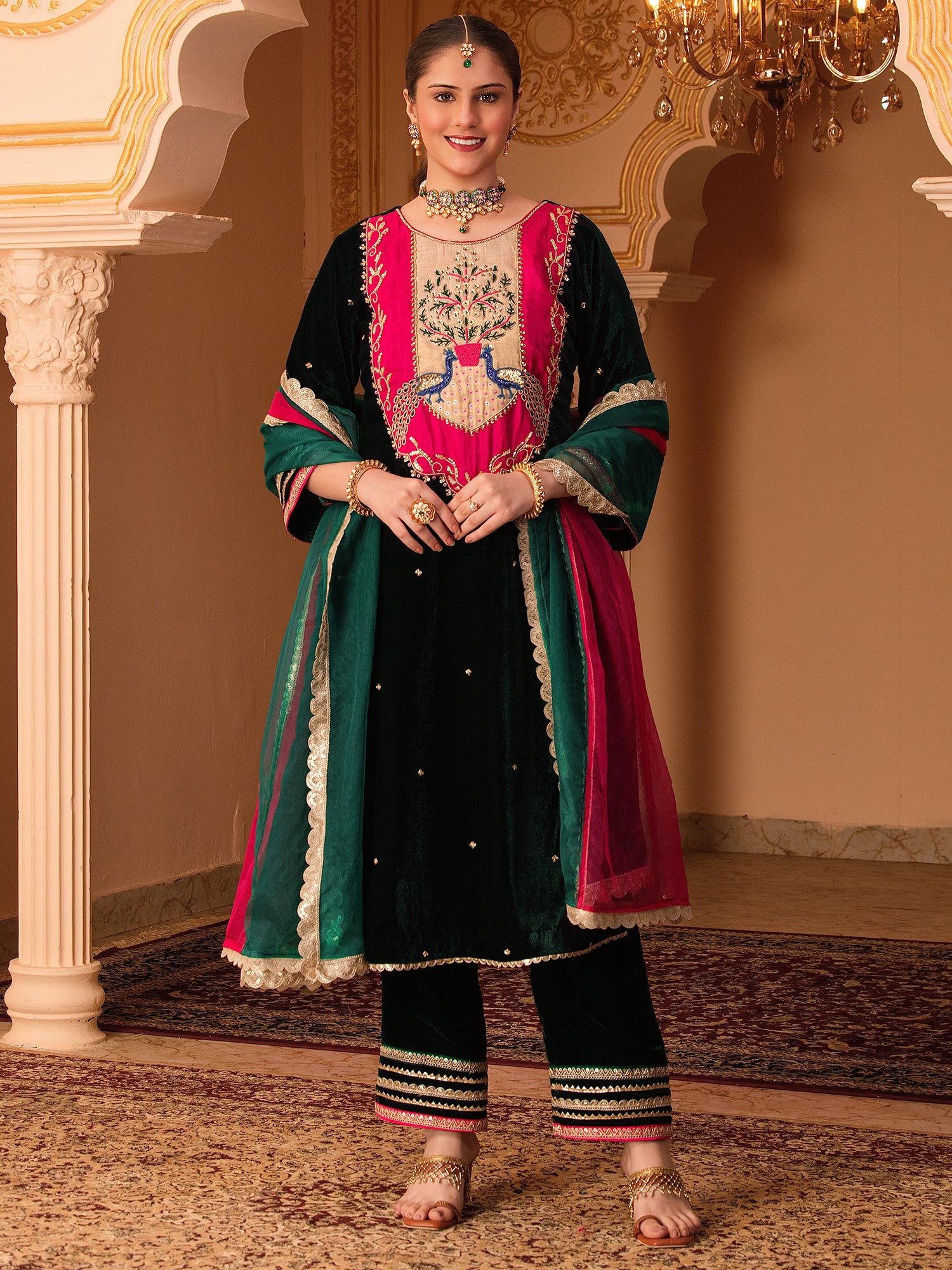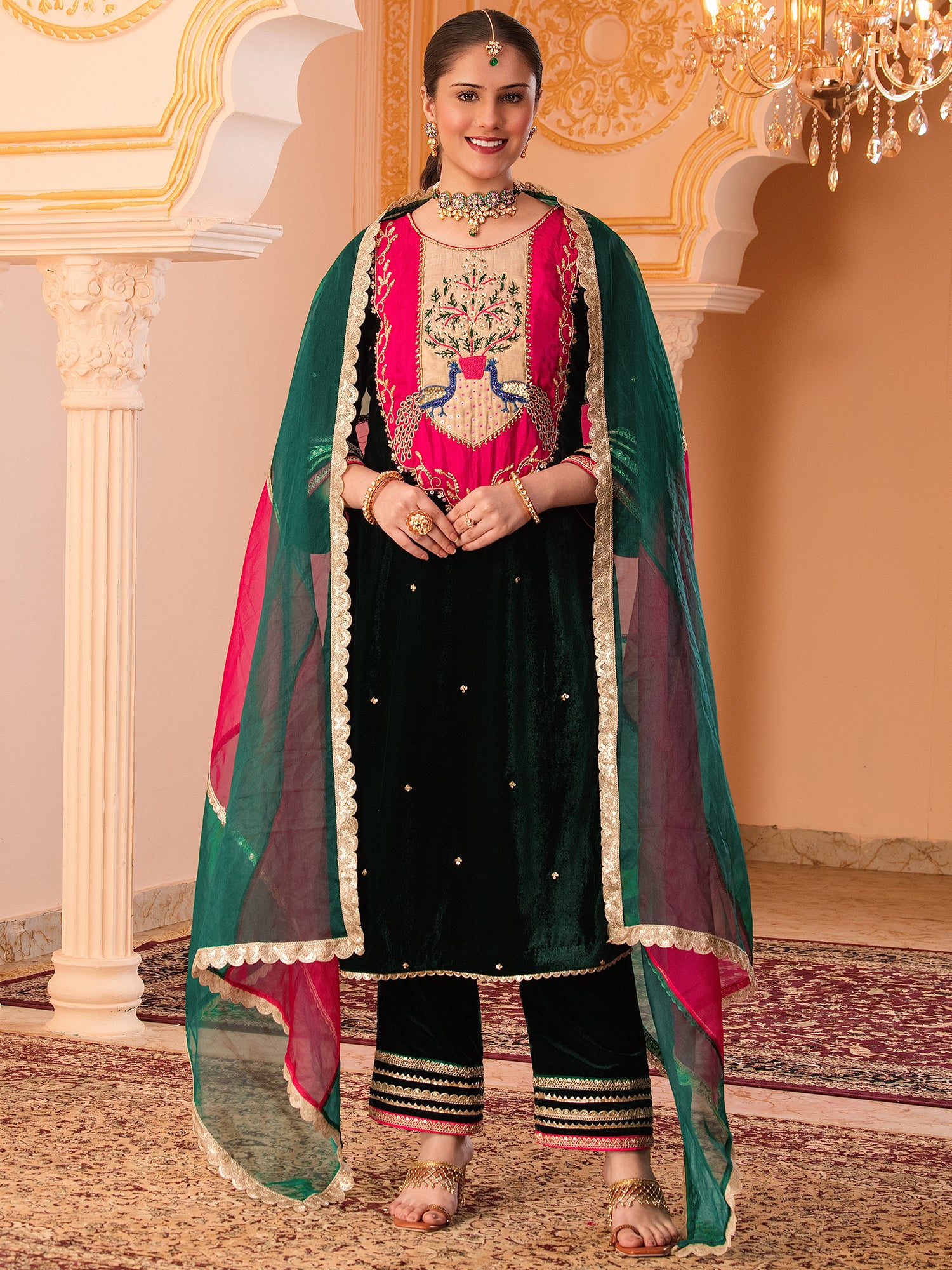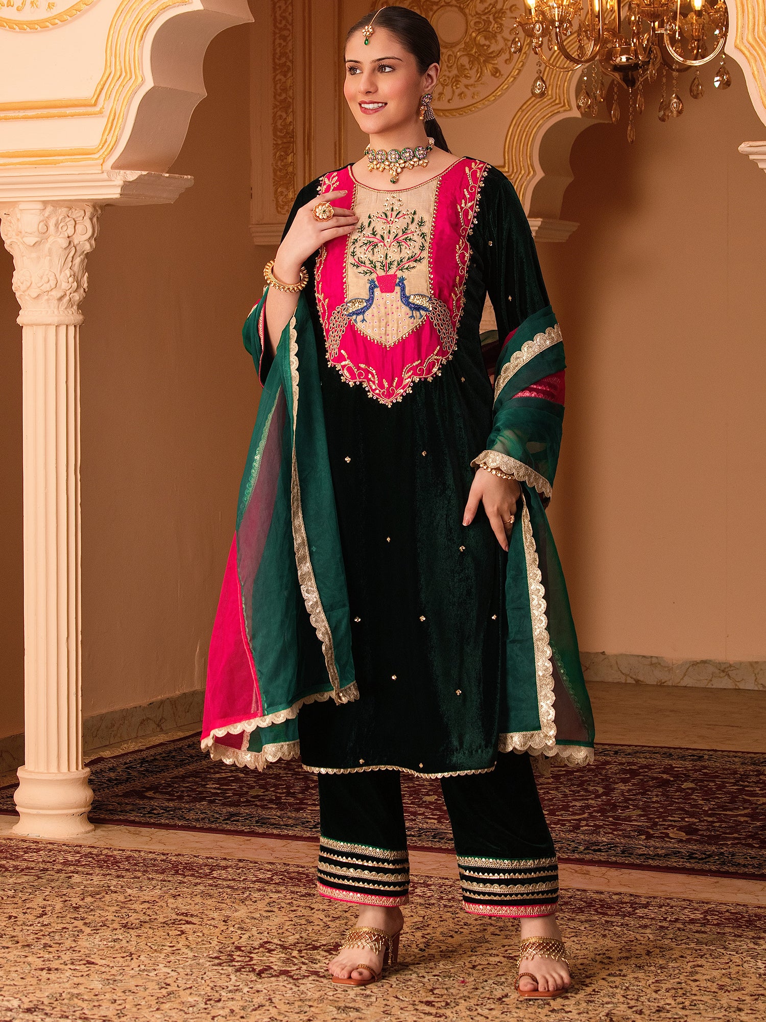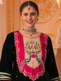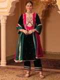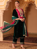 Bottle Green Velvet Hand Embroidered Suit Set