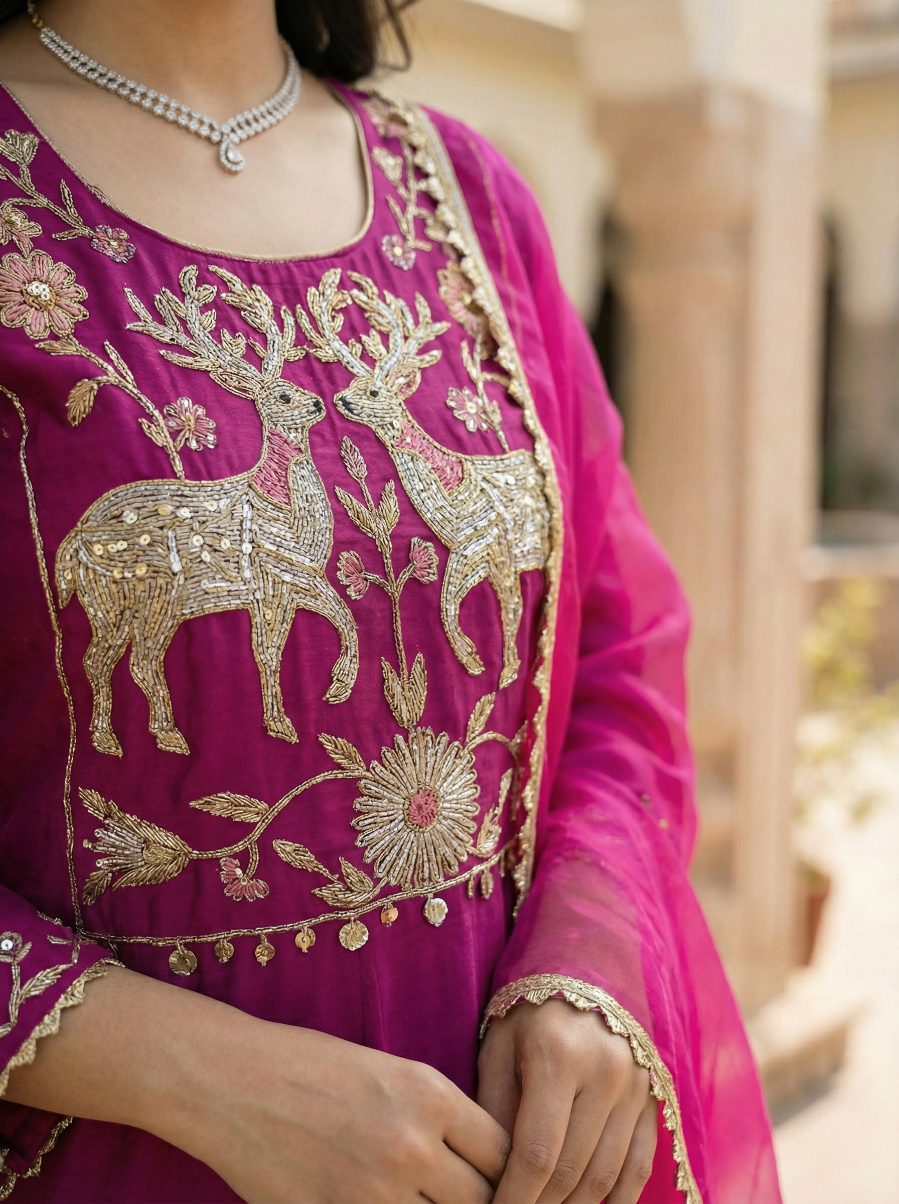 Pattern - Hand Embroidered With Thread, Dapka, Beads & Zardozi Work