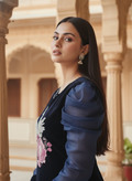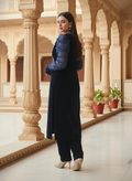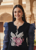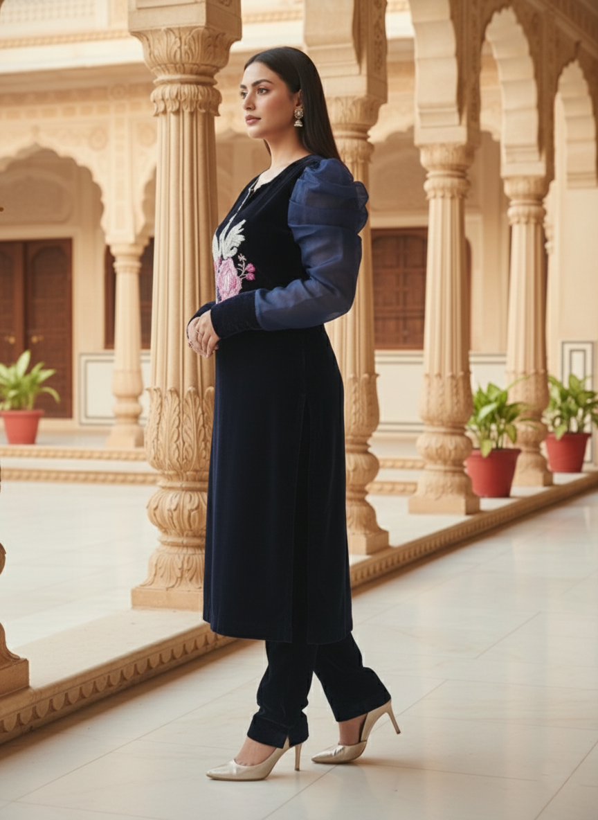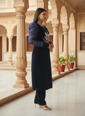 Navy Blue Hand Embroidered Velvet Kurta Set