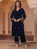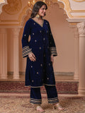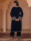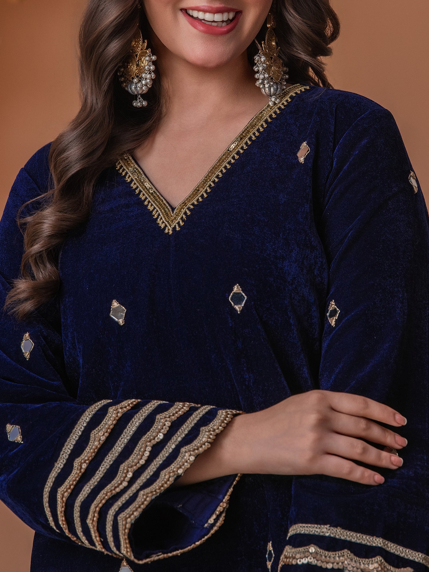 Name - Navy blue Mirror work Velvet 3 piece suit set