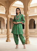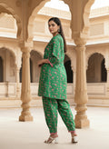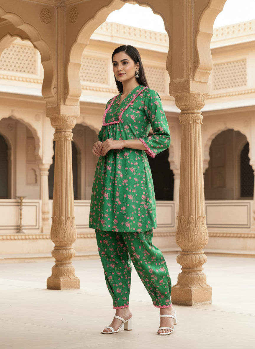 Linen Kurta Set in Sayyami Green Floral Print