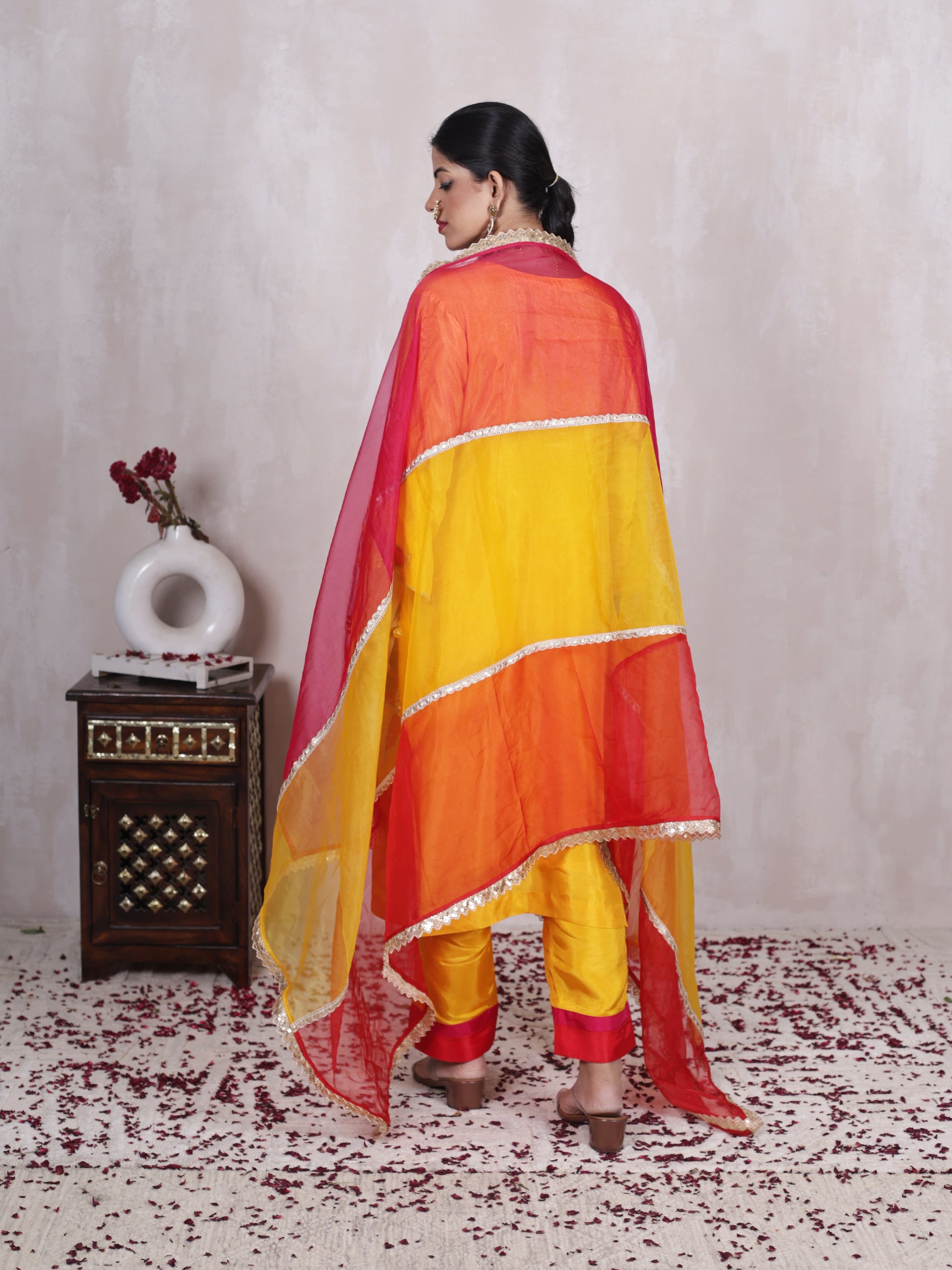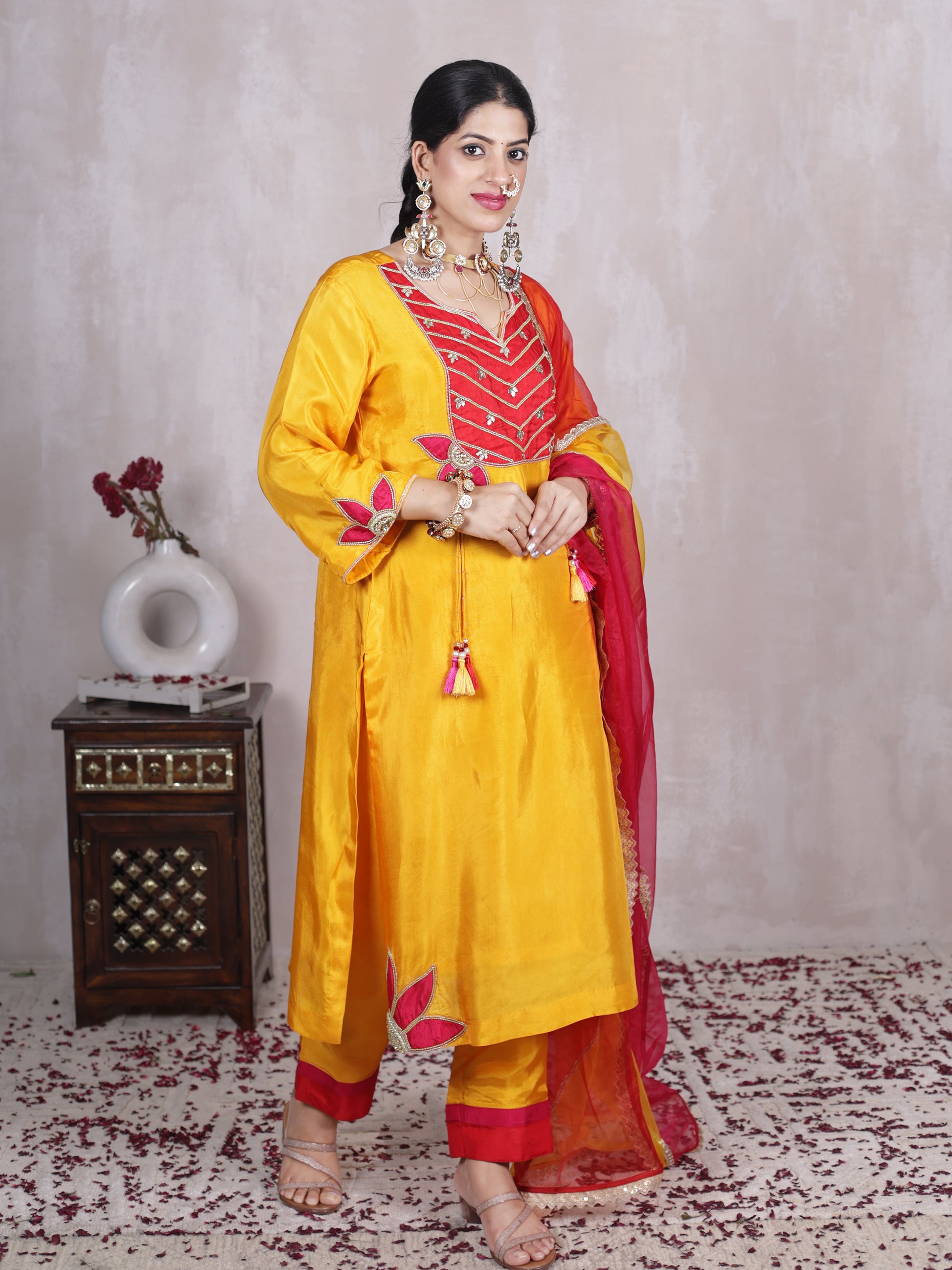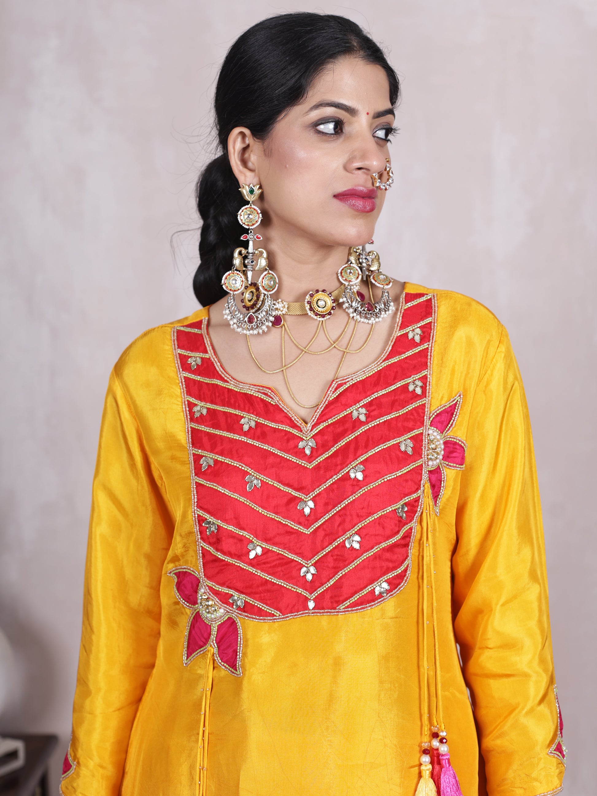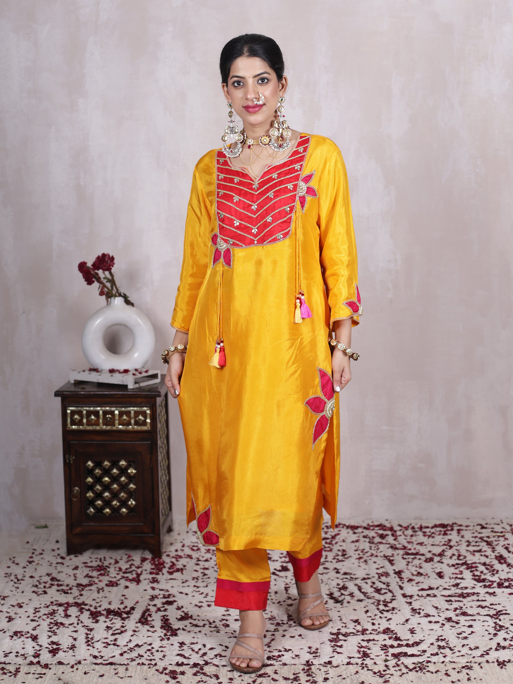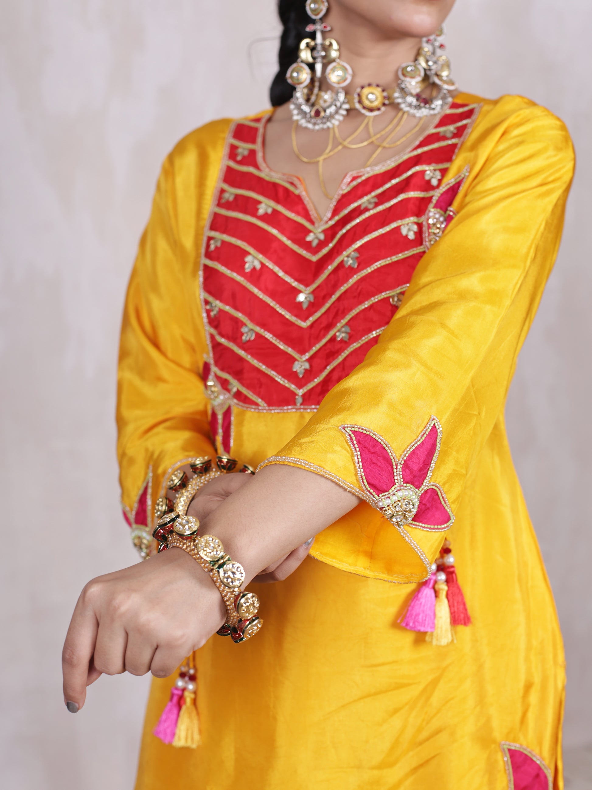 Tarangini Deep Yellow Hand Embroidered Silk Suit